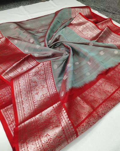 Shiny Crush Tussar Satin Crape Saree with Floral Border