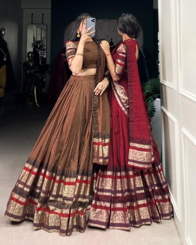 Pure Banarasi Zari Meena Weaved Stitched Lehenga and Blouse with Printed Dupatta